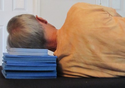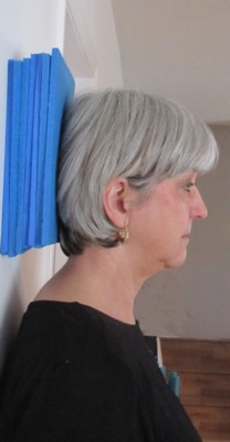 First we checked to see how forward our heads were in standing to find out how posture in standing would affect the amount needed under the head lying on the back.